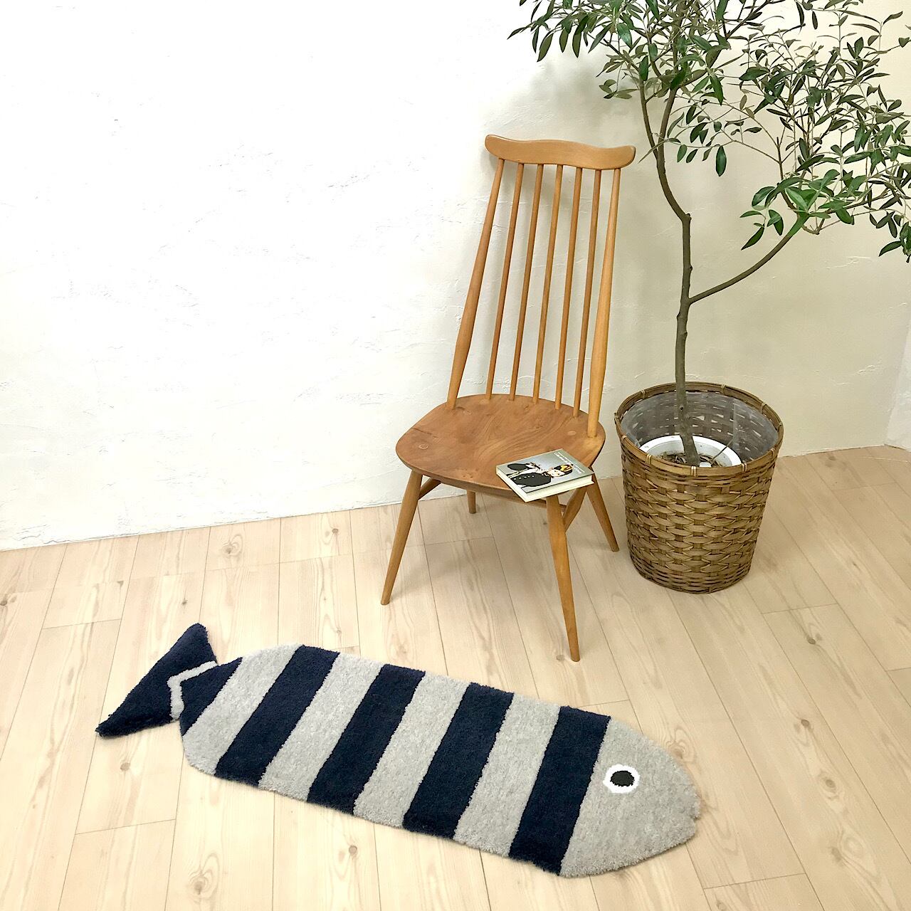 存在感のある、長めのフォルムのおさかなラグ。