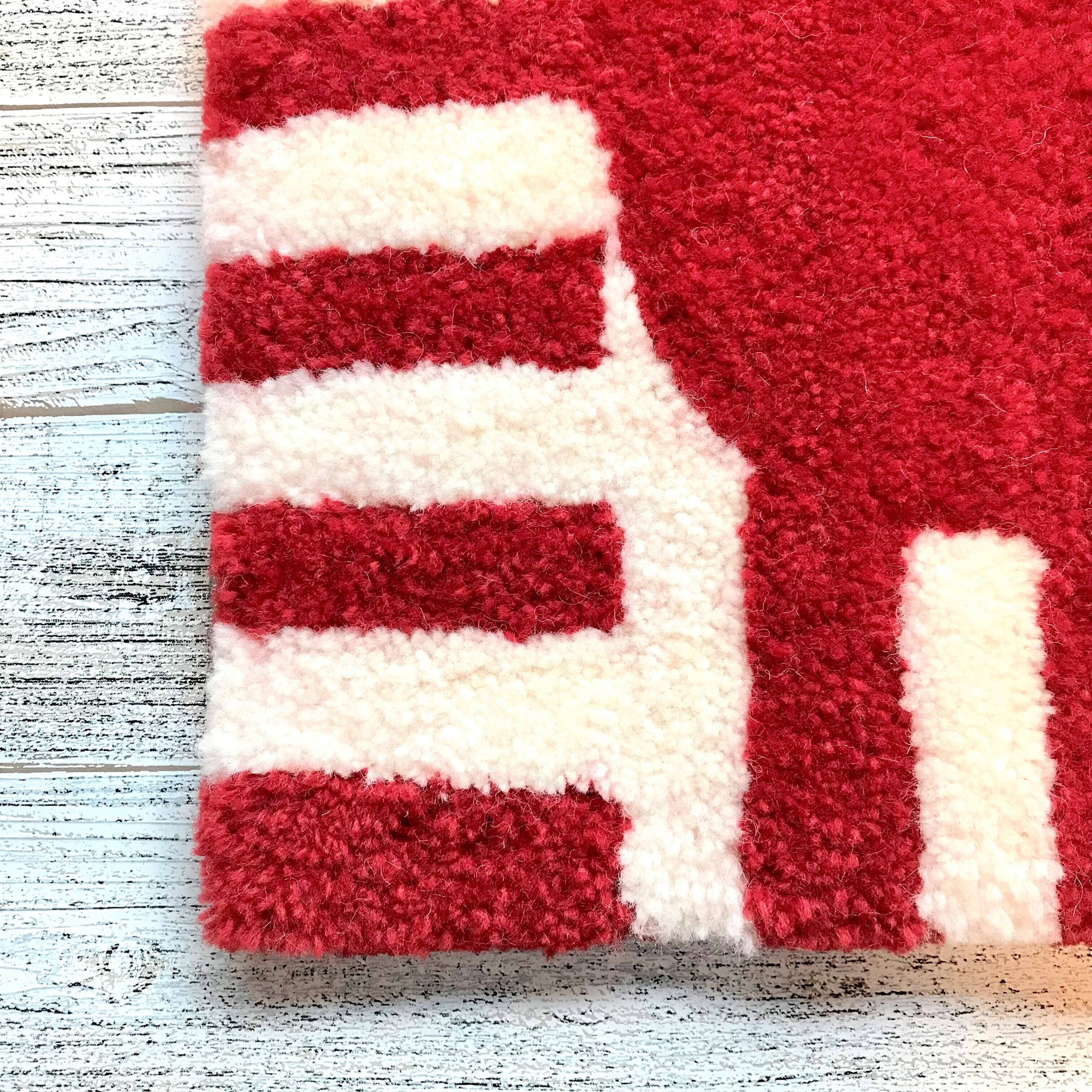 赤と白の縞がインテリアに映えるラグ。