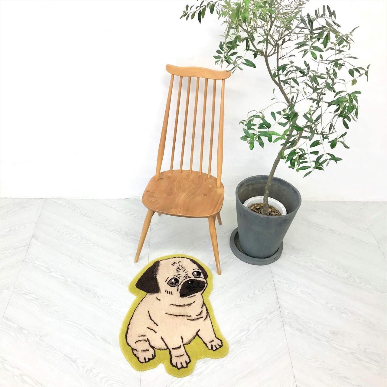 潤んだ瞳が印象的なパグちゃんのラグ。